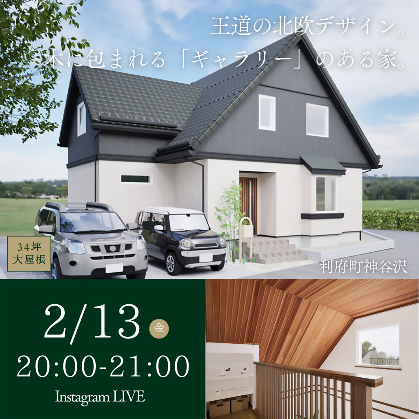 ダイナミックな船底天井リビングの大屋根邸宅 ドイツ生まれのダブル断熱システムで叶えるG2性能と