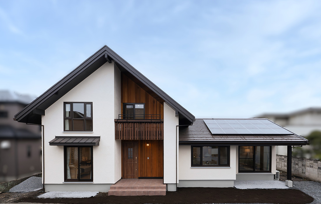 I様ご夫婦とお母様が同居の準二世帯住宅。宇都宮展示場を思わせるゆったりとした大屋根が目をひきます。共働きで忙しくされているご夫婦でもご家族との時間をきちんと確保したいと、毎日の家事に時間をかけない工夫をいたるところに散りばめました。