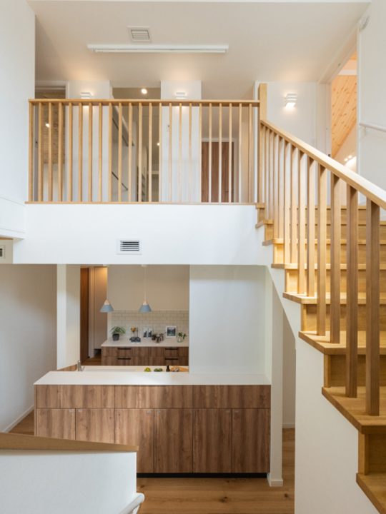 また、階段を上がってすぐの場所に子供部屋を設けることで、ダイナミックな吹抜けを介してダイニングと繋がります。お子様が子供部屋にいても、遠くから見守れる配置です。