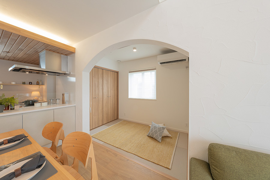 リビングの横にはタタミコーナーを作りました。お子様がお昼寝をしたり、遊んでいるときには、安心して見守れます。ご夫婦もお昼寝ができるよう、大人が横になっても十分な3帖のスペースをつくりました。