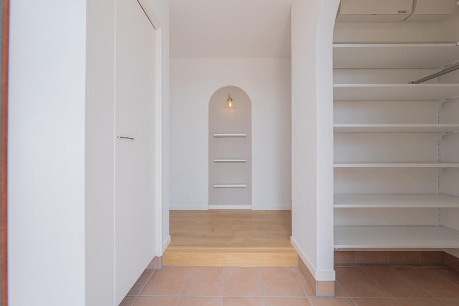 アーチと飾り棚が彩る、帰るたびに癒される玄関