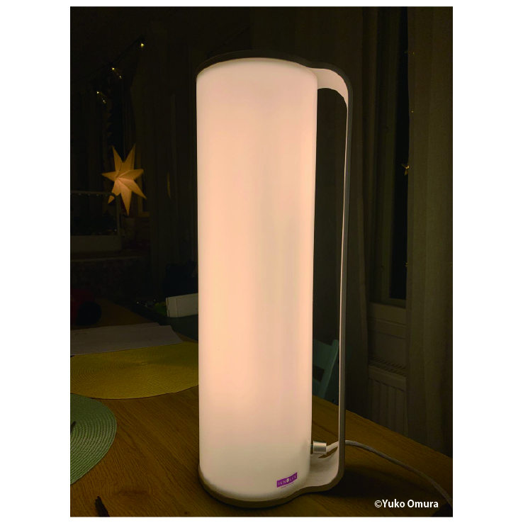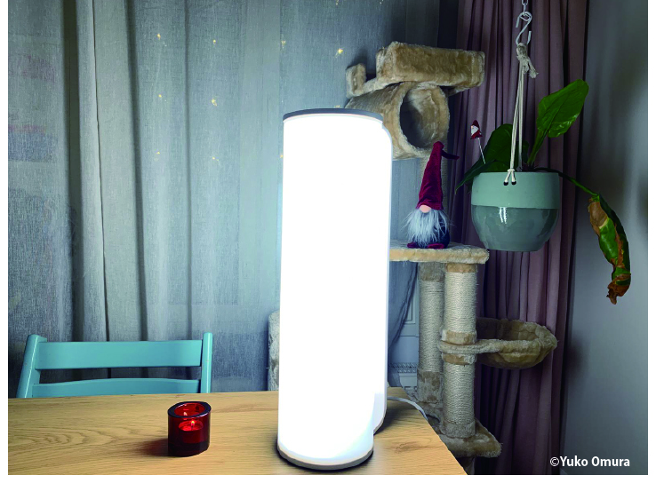日の光を補うランプも使っています。朝起きたら家中の照明をつけます。そしてこのランプの光を浴びながら朝食をとります。