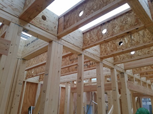 こちら1階建物内部の様子です。等間隔に構造材が並んでいます。