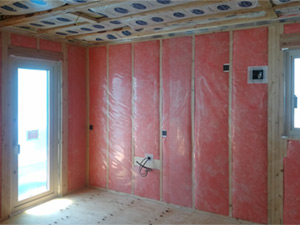 高性能グラスウールをパンパンになるまで詰め込み、気密シートを張ってあります。