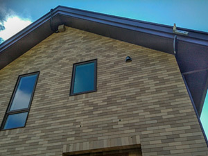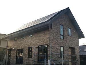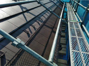 軒先のほうに黒くメッシュ状に見えますのは雪止めです。屋根材と積雪の間に金網を取り付ける事により摩擦をつくり、落雪を軽減してくれます。