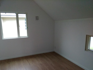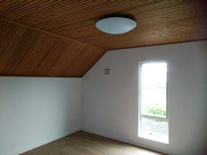 三角屋根のお家の2階の部屋はこのような勾配天井になります。
