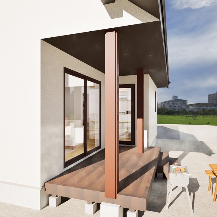 オーナー様を見学した際に、軒下空間を見て、「そこでBBQや読書をしたい」と思っていたことを実現しました。