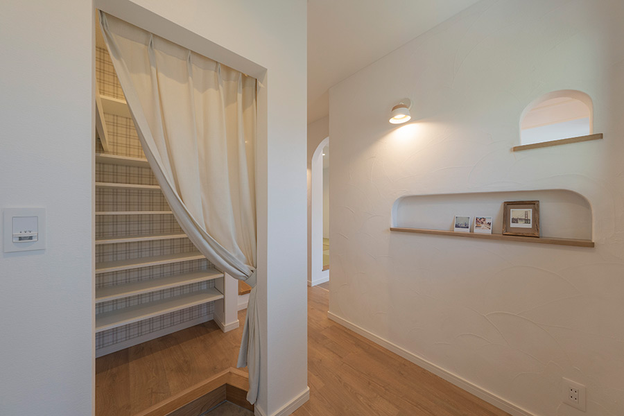 ネコちゃんと一緒に暮らす予定のため、吹抜けをネコちゃんの休む場所に想定しました。