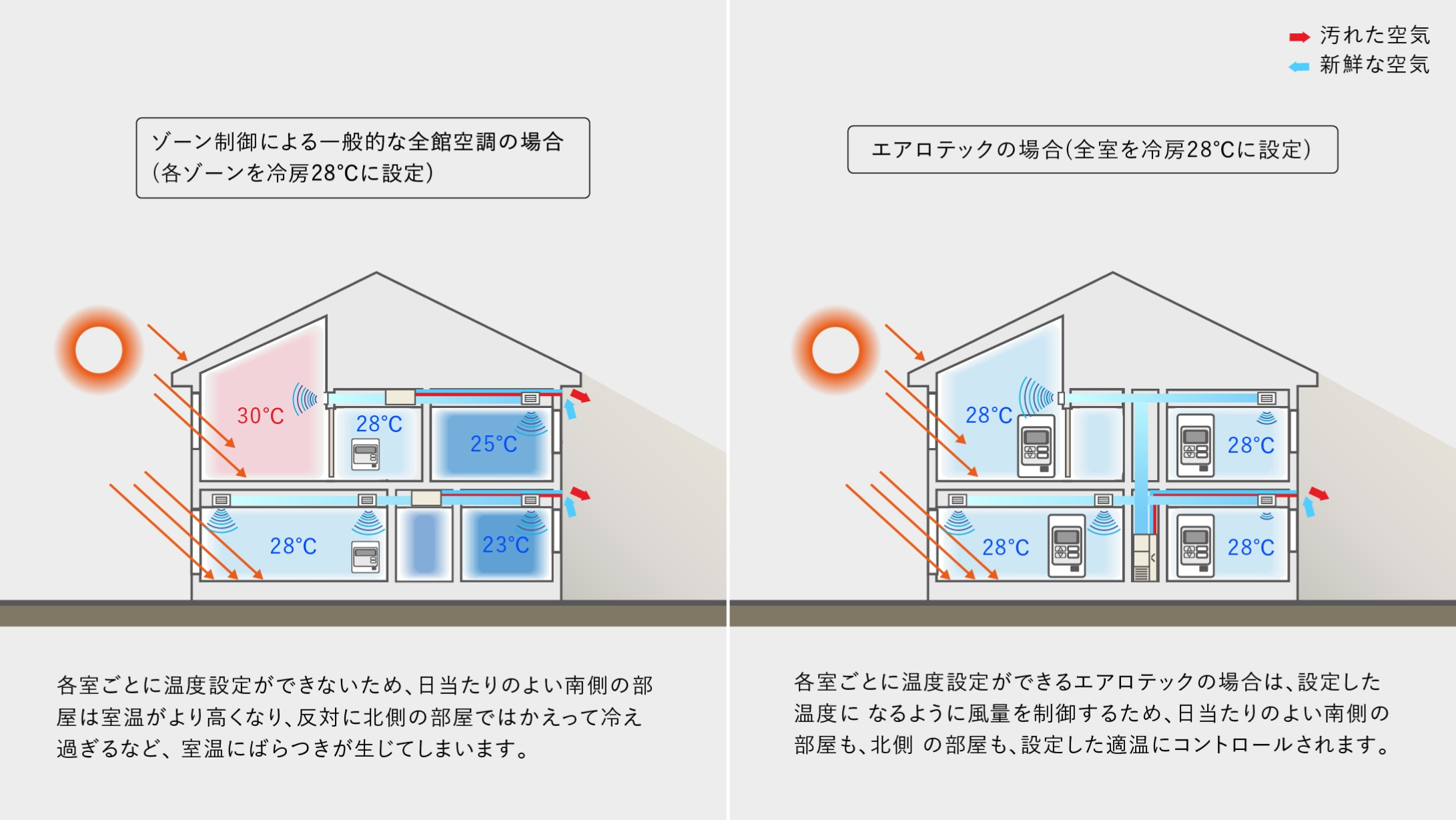 □ 洗面所や玄関がとにかく暑い…。□ 夏の2階が蒸し風呂状態で、寝苦しい…。□ エアコンの風が直接当たるのが苦手…。□ 部屋ごとにエアコンをつけると、電気代が気になる…。□ 結局、リビングしか快適な場所がない…。