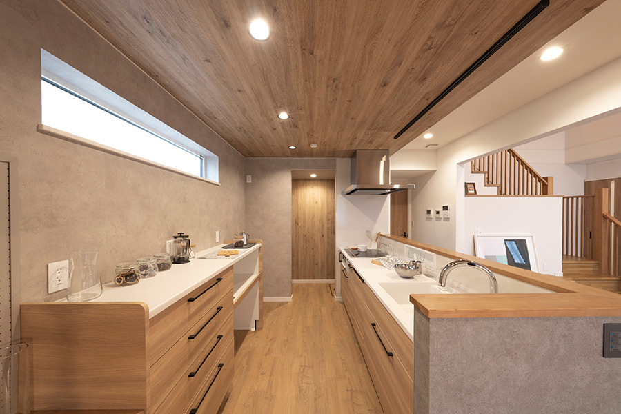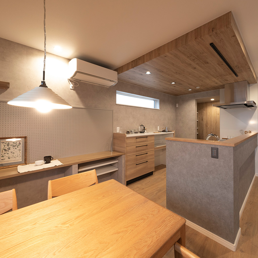キッチンからダイニング、リビング、オールルームを見渡せる視線を意識してプランニングしました。