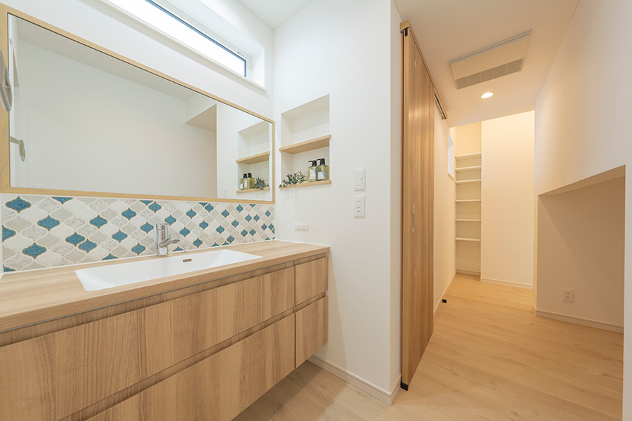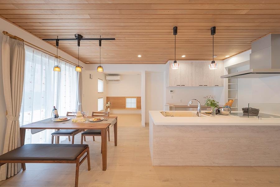 また、キッチンを中心としたループ動線とすることで日々の暮らしにゆとりをもたらす家事楽動線を採用しています。