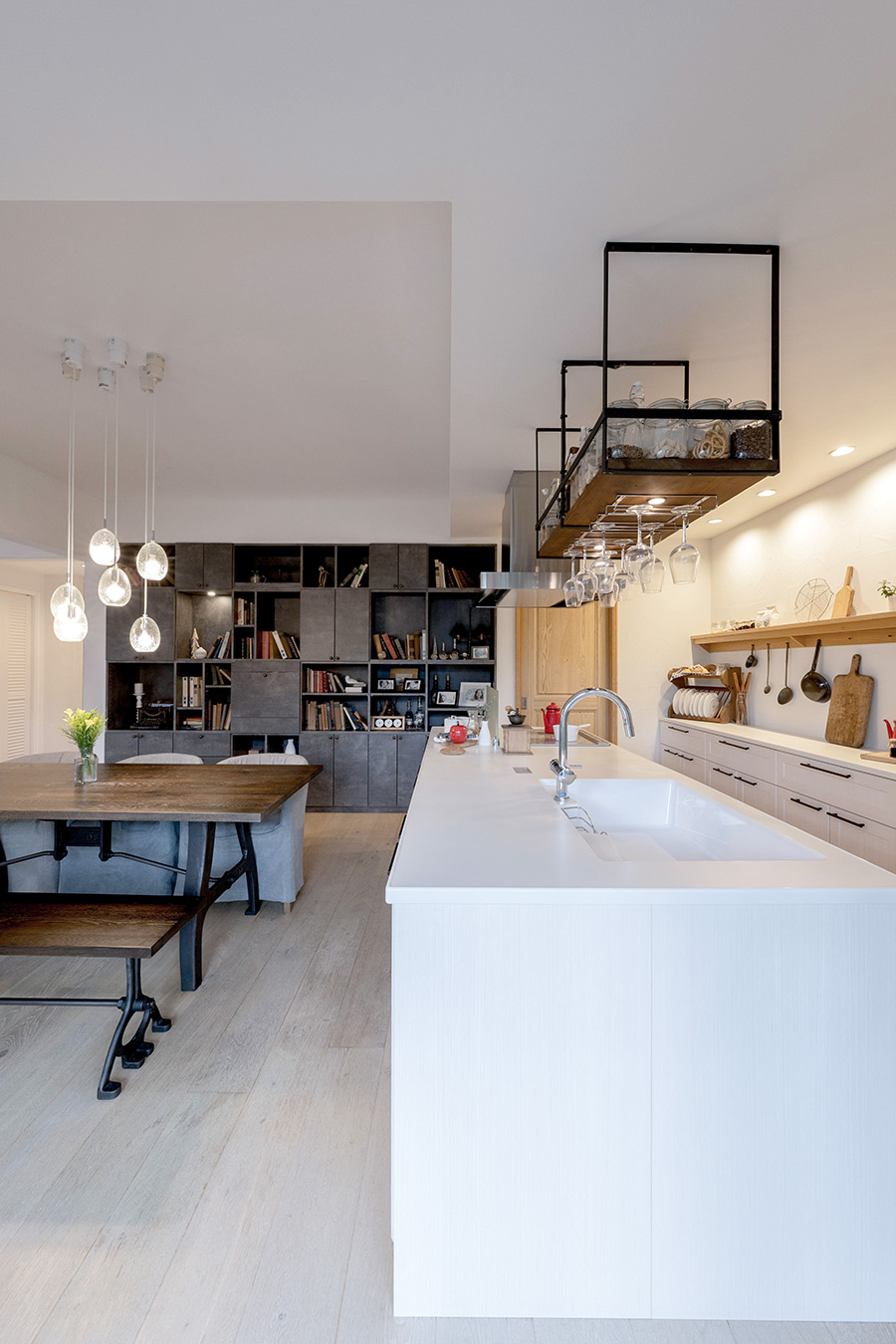 リビング、ダイニングからキッチンまで広がる開放感あふれる大きな吹き抜けと、窓から差し込むたっぷりの自然光が、ゆったり寛げる贅沢な空間をつくりだします。