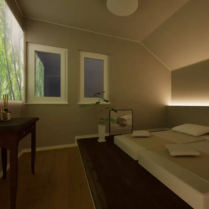 夜は壁にプロジェクターを投影して、寝ころびながら家族みんなでシアター時間を楽しめる寝室です。