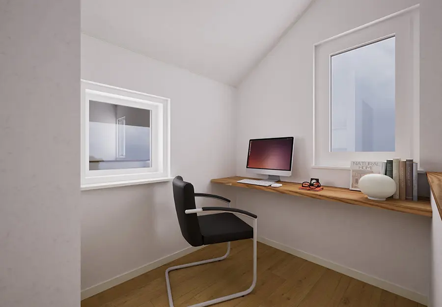 2階のホールは、ワンちゃんから離れて集中したい時の、家族みんなの共有スペース。