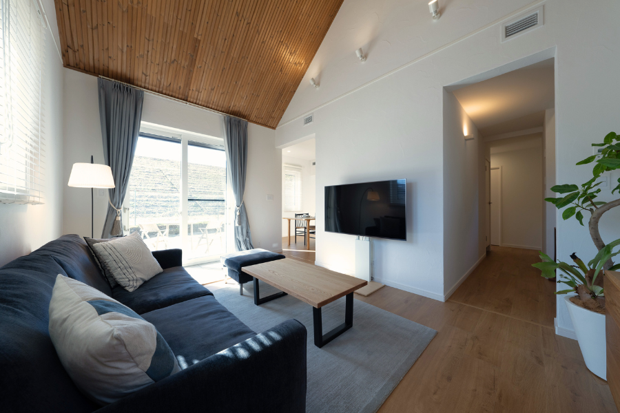 船底天井のリビングでゆったりくつろぐ時間を過ごしましょう。