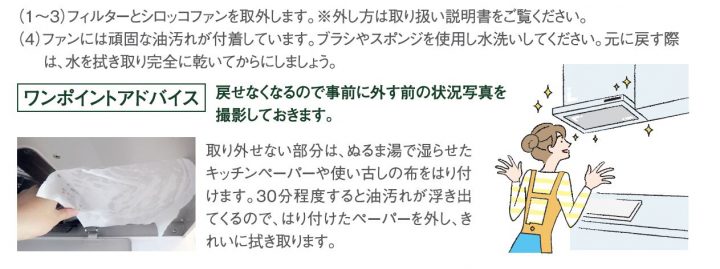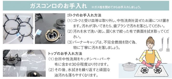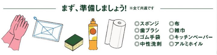 ※お住まいの設備によって掃除方法が異なる場合がございます。正しいお手入れのために、キッチン設備の「取扱説明書」も合わせてご確認ください。