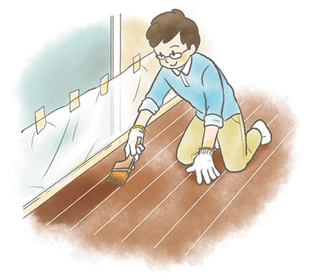 お掃除⇒乾燥⇒塗布⇒乾燥⇒二度塗り⇒乾燥の工程を踏みます。しっかりと時間がとれる晴れの日を選びましょう。また、濡れた状態での作業は避けてください。