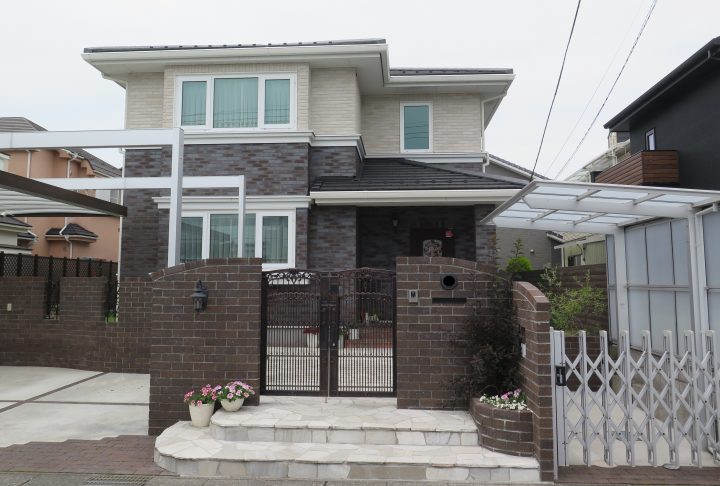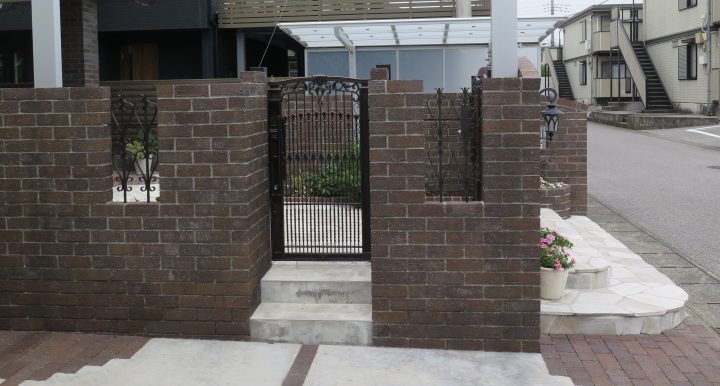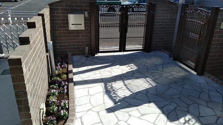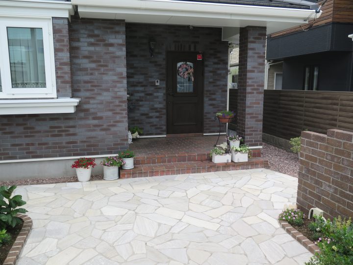 塀のレンガやアプローチの敷石は、色や質感にこだわり、何度もショールームへ行かれ検討を重ねました。
