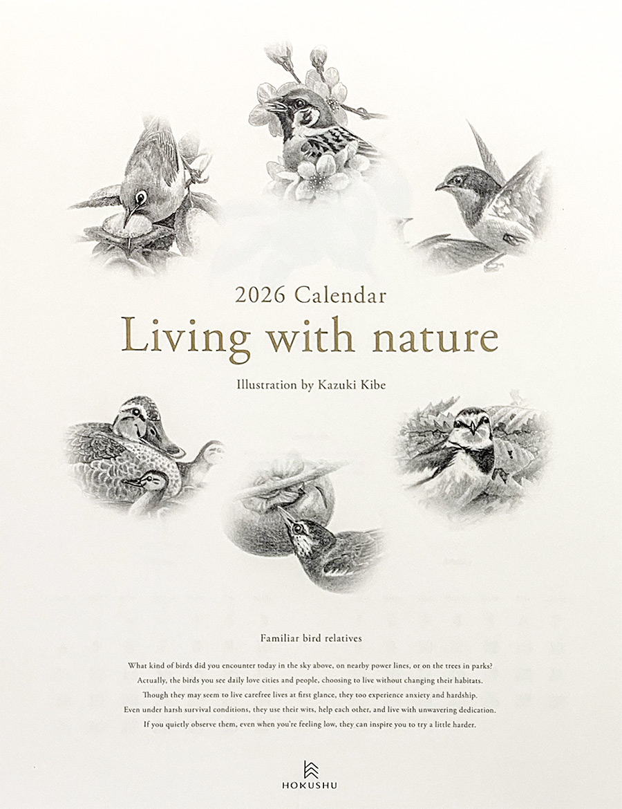 2026年北洲オリジナルカレンダー「Living with nature」完成 2025年12月06日 北洲ハウジング2026年オリジナルカレンダー「Living with nature」が完成致しました。 野生動物の生態をありのままに描くワイルドライフ・アートの分野で高い評価を得ている木部一樹氏の筆によるカレンダーです。 2026年は、私たちの身近にいる鳥たちをテーマにしています。 カレンダーをご希望の方は、お近くの展示場でどうぞ。なお、数に限りがございますこと、予めご了承下さい。 展示場のご案内
