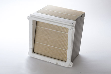 換気する過程で本体内部の「素子(そし)」により外の空気と室内の空気の熱(温度)を交換。換気による熱の「ロス」を少なくします。