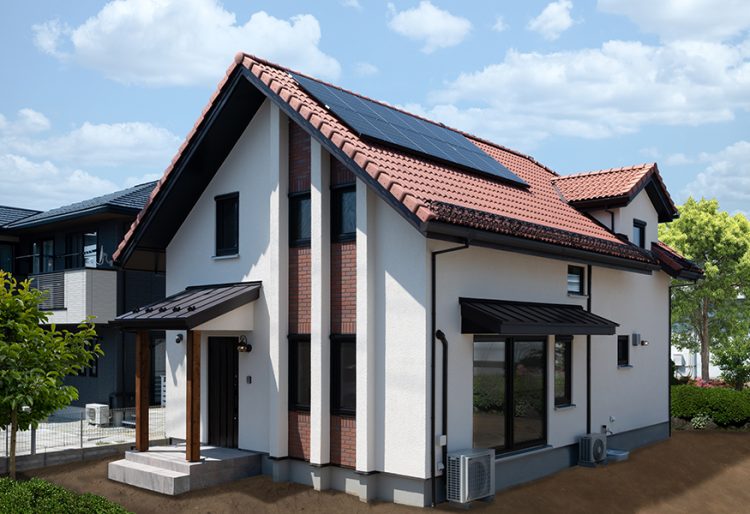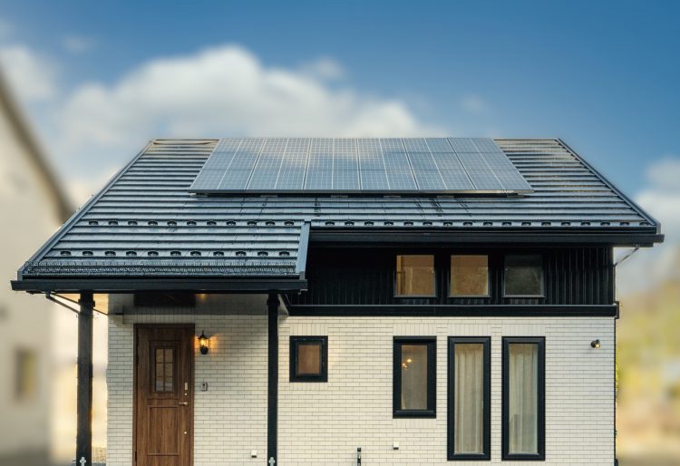 大屋根にデザイン性の高い太陽光パネルを装備し、少ないエネルギーで暮らせるスマートハウスを実現します。