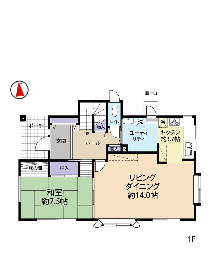 | 床面積 | 1階:68.11㎡/2階:72.04㎡/合計:140.15㎡(42.39坪) |