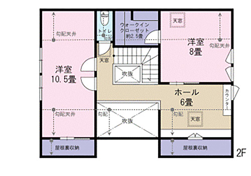 | 建物間取り | 3LDK+ホール+WIC+シューズクローク+パントリー ※2階西側洋室(10.5畳)は、別途工事費用負担により、2部屋に変更可能です。 |