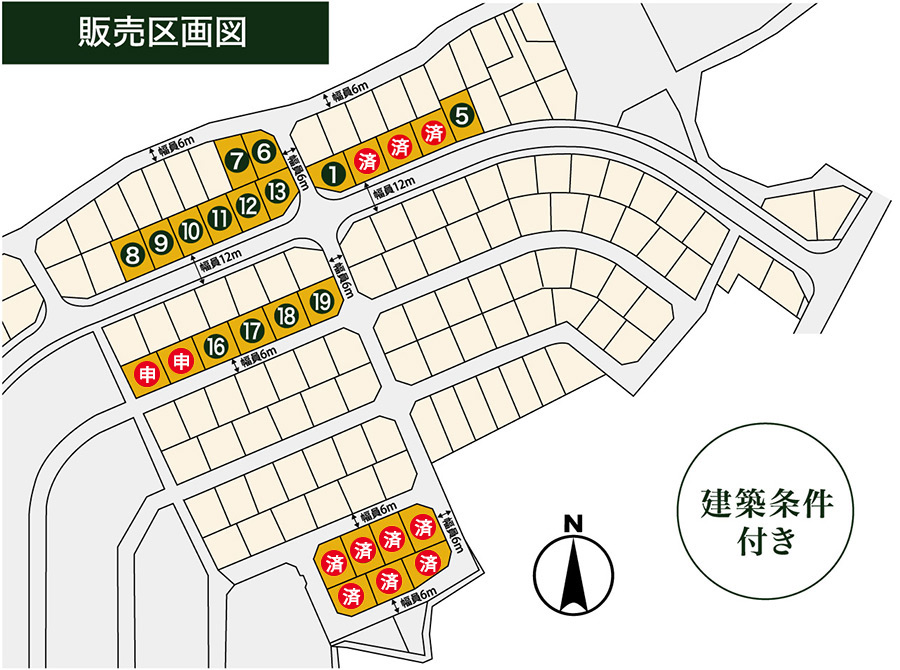 | 建築条件 | この土地は、土地売買契約後3ヶ月以内に売主と建物の建築請負契約を締結する事を条件に販売します。この期間内に建築請負契約を締結されなかった場合は白紙となり、受領した手付金等の土地代金は全てお返しいたします。 |